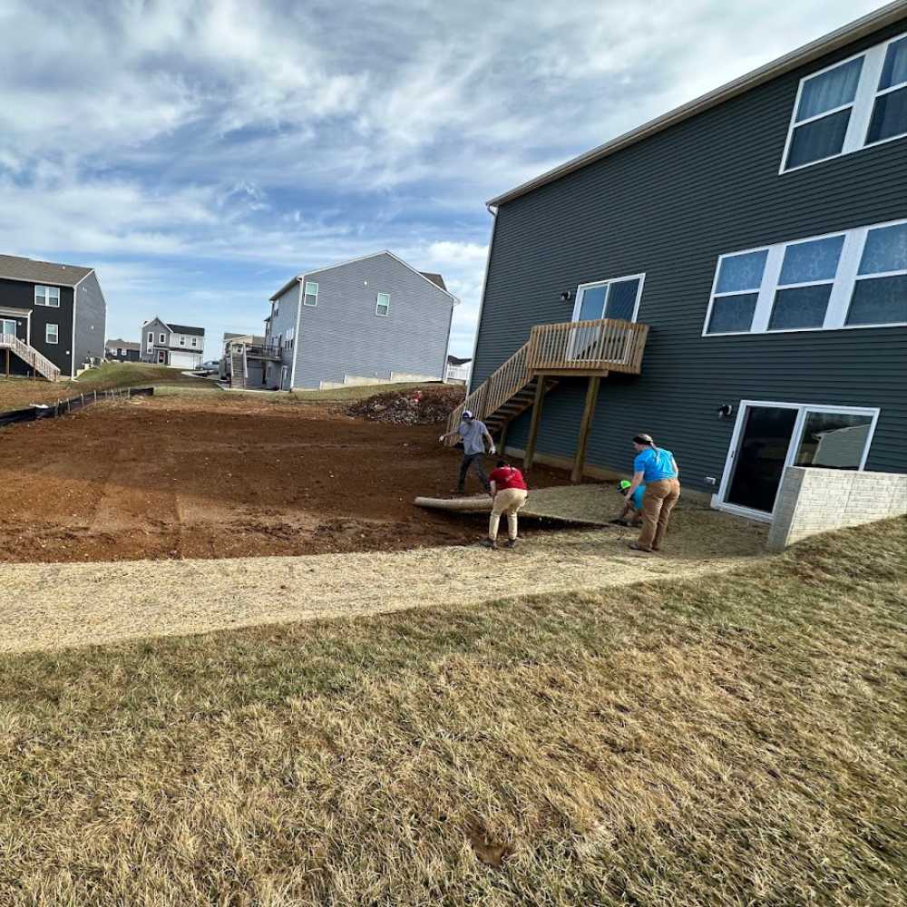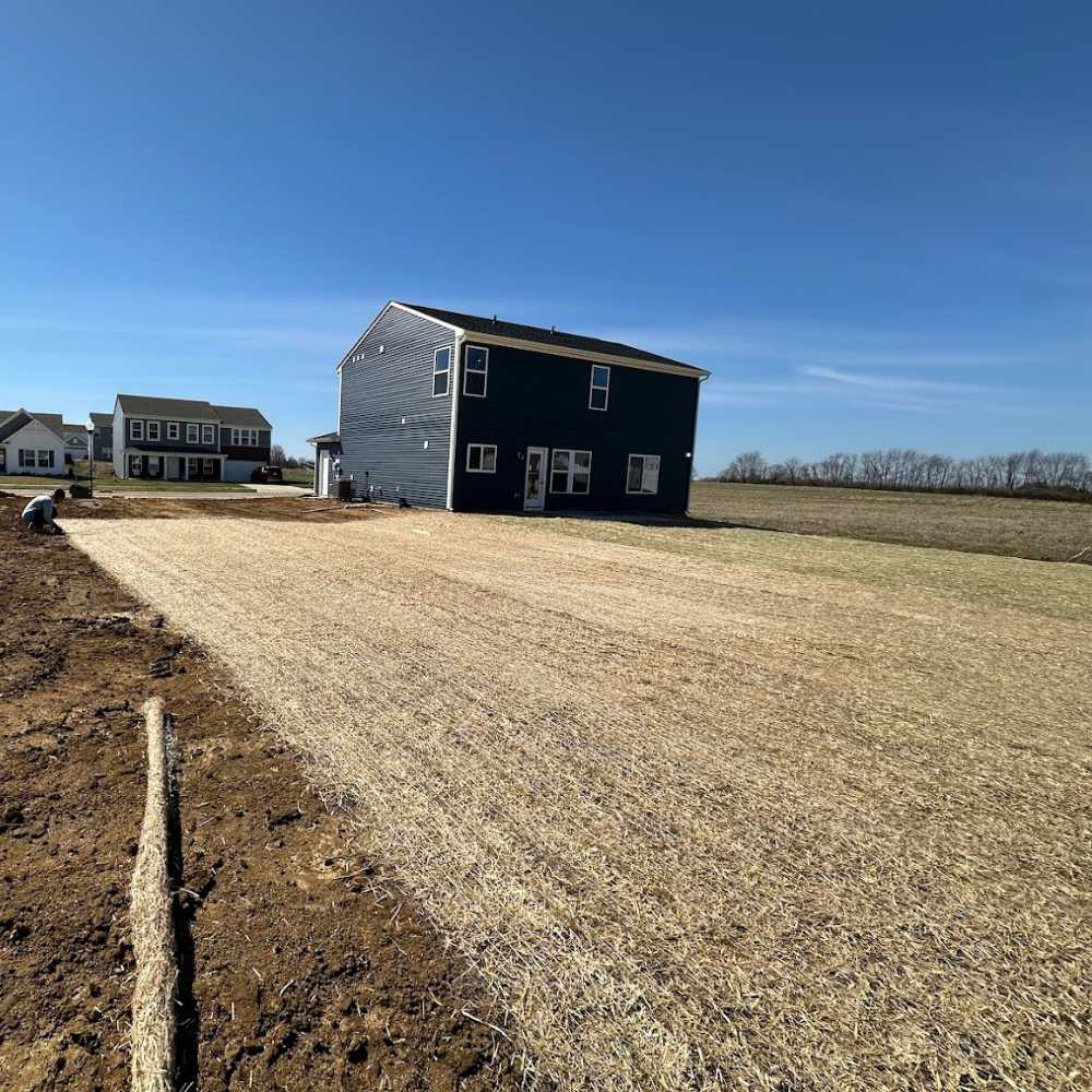 Good, old fashioned, seed and straw... Cost effective way to meet erosion control standards or grow you lawn.